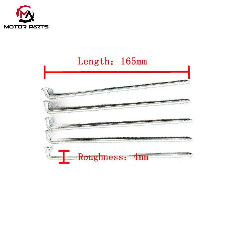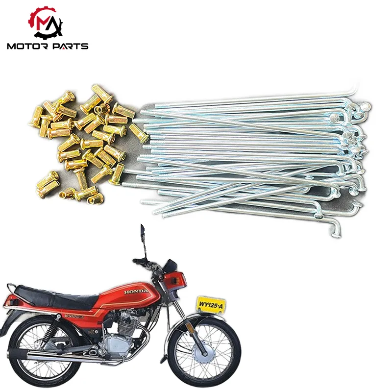 Максималды саудамотоцикл доңғалақтары үшін арнайы жасалған, беріктігі мен жеңіл өнімділігін теңестіретін Қытайдан жоғары берік Honda WY125 мотоцикл спикерлерін ұсынады. Ұзақ жүктеме кезінде және қиын жол жағдайларында да иілу немесе сынуды болдырмайтын хаб пен жиек арасындағы сенімді байланысты қамтамасыз ету үшін әрбір спиц арнайы өңдеуден өтеді.