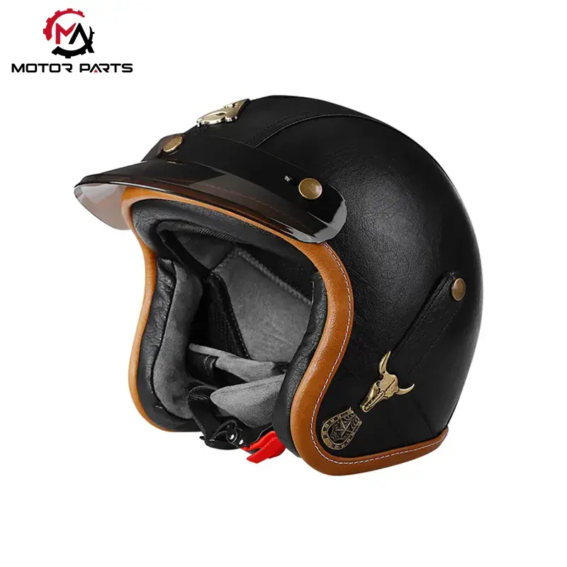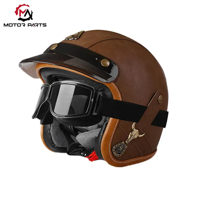 Қытайлық мотоциклді көзілдіріктері бар жартылай бет дулыға былғары - бұл Max Trading өндірушісінің ретро стиліндегі жартылай дулыға өнімі, ол қауіпсіздікті қорғау мен стильді дизайнды біріктіреді, даралық пен практикалықты бағалайтын шабандоздар үшін қолайлы.
