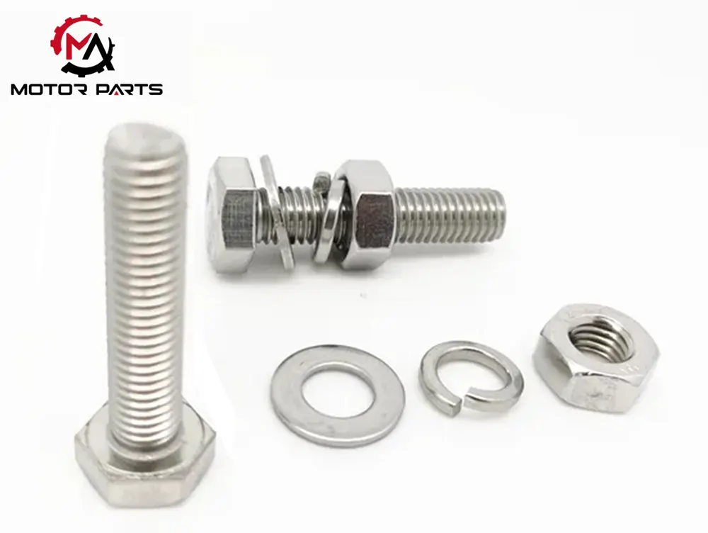 Engine system: As the core power unit of motorcycles, the internal structure of the engine is precise and complex, and the stable connection of various components is crucial. Among them, the cylinder head bolts shoulder the responsibility of fixing the cylinder head and cylinder block, guaranteeing the sealing of the combustion chamber and preventing power loss; The crankshaft bolt firmly locks the crankshaft, ensuring its stable operation under high-speed rotation; Connecting rod bolts connect the connecting rod and crankshaft to achieve efficient power transmission. These key bolts must have great strength and fatigue resistance to cope with the harsh working environment of the engine.