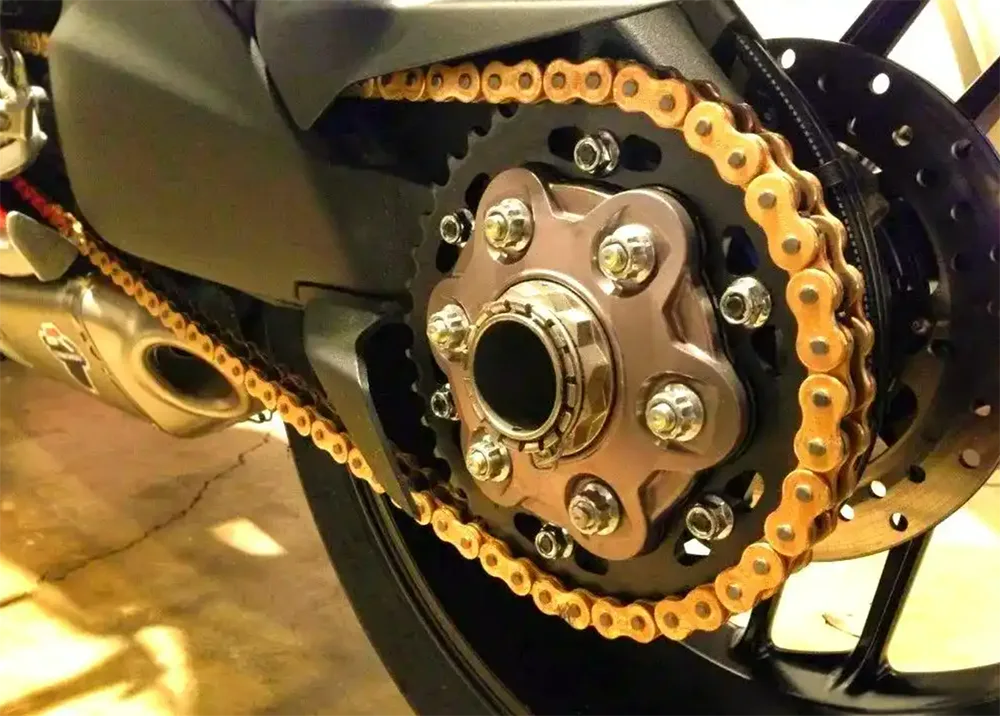 Көптеген мотоциклдердің электр беру схемалары арасында тізбек және бүрку жүйесі көптеген мотоциклдер арасында қарапайым және тиімді сипаттамалардың артықшылықты таңдауына айналды. Оның жоғары беріліс тиімділігі мен жалпы жеңіл салмағы бар, әсіресе жоғары момент қажет көлік құралдары үшін қолайлы. Алайда, бұл сонымен қатар, пайдалану кезінде тозу және шу сияқты белгілі бір шектеулер бар. Қозғалтқыштың қуатын артқы доңғалақтарға беру процесінде моментті күшейту және қысқарту арақатынасын түзетуге қол жеткізуге болады.